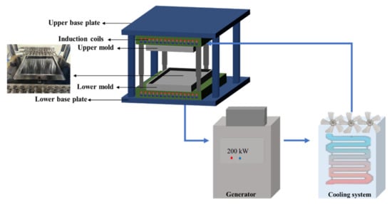 Schematic of the CF/PPS composites manufacturing process using induction-heating molding.