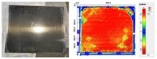 Photograph and C-scan image of a CF/PPS composite (processing temperatures of 280 °C).