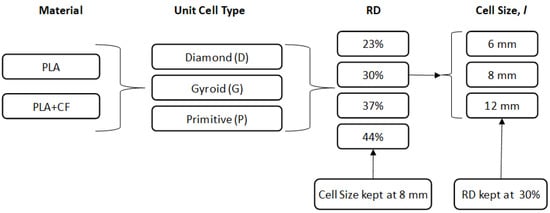 | No. | Lattice Designation | Cell Type | Cell Size l (mm) | RD % | No. | Lattice Designation | Cell Type | Cell Size l (mm) | RD % |