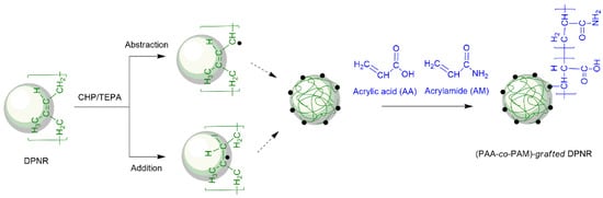 Schematic representation of preparing the (PAA-co-PAM)-grafted DPNR by graft copolymerization.
