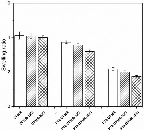 Swelling ratio of the silica-filled natural rubber composites.