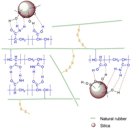 Schematic representation of (PAA-co-PAM)-DPNR/silica interactions.