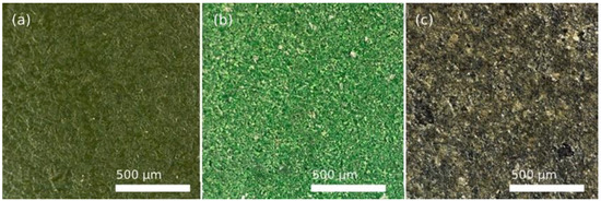 2D images of coatings obtained by confocal Leica DVM6 microscope: (a) PFA-base, TF-76521, (b) FEP-base, TF-3531, (c) PTFE-base, TF-851 E.