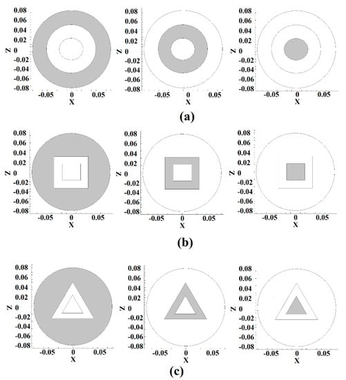During the FSW process, the joint surface between the workpiece and the tool is essential in generating frictional heat [37]. The friction at the interfaces makes frictional heat. For this reason, analysis of the contact surface between different tools for understanding thermal history is essential [38]. The contact area of various tools is depicted in Figure 5.