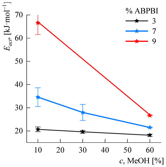 Figure 11 shows the Eact values as a function of the methanol concentration in the solution for different concentrations of ABPBI.