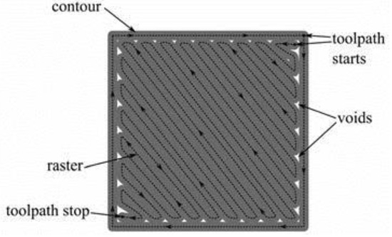 Formation of air void between printed layers. Reprinted with permission from [32], 2017, Elsevier, Amsterdam, The Netherlands.