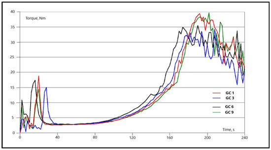 The flow-curing behaviors of PMCs were determined using a torque rheometer (Brabender Plastograph EC plus, MB30 mixer, Brabender GmbH & Co. KG, Duisburg, Germany). The 25 g of test samples were loaded into the mixer bowl at 140 °C. The speed of the triangle-shaped mixing blades was 30 rpm. The measurements shown on the plastogram represent the time dependence of the torque at a given temperature with respect to the changes in material structure. The evaluation was made with Brabender data correlation software according to standard DIN 53 764 [29].