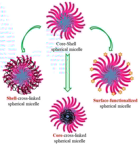 - Talelli, M.; Barz, M.; Rijcken, C.; Kiessling, F.; Hennink, W.; Lammers, T. Core-crosslinked polymeric micelles: Principles, preparation, biomedical applications and clinical translation. Nano Today 2015, 10, 93–117. [Google Scholar] [CrossRef] [PubMed]