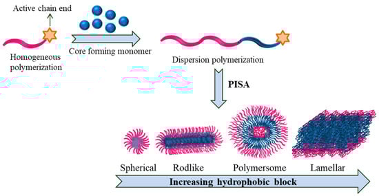 - Liu, C.; Hong, C.; Pan, C. Polymerization techniques in polymerization-induced self-assembly (PISA). Polym. Chem. 2020, 11, 3673–3689. [Google Scholar] [CrossRef]