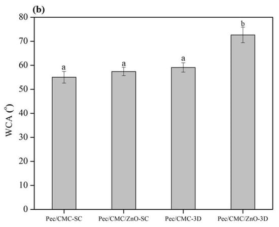 2.6. Water Vapor Permeability (WVP) and Water Contact Angle (WCA)