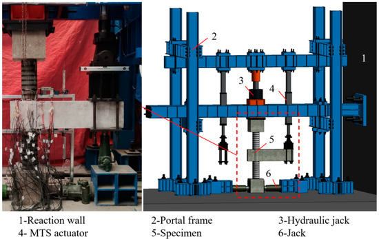 As presented in Figure 2, the vertical load transmitted from the superstructure is performed by the hydraulic jack on the column top, the MTS actuator attached to the portal frame provides the cyclic loading to simulate the seismic action. The data acquisition system automatically captures the vertical loads and displacements at the frame beam end from the transducers inside the MTS actuator.