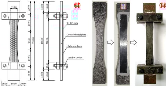 - Li, A.; Xu, S.; Wang, H.; Zhang, H.; Wang, Y. Bond behaviour between CFRP plates and corroded steel plates. Compos. Struct. 2019, 220, 221–235. [Google Scholar] [CrossRef]