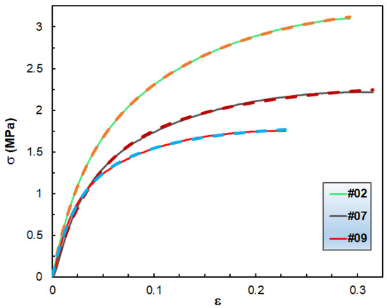 The derivation of Equation (11) can be found in the Supporting Information section. Equation (11) was then fitted to the experimental σ–ε data and the results of the fitting for samples #02, #07 and #09 are shown in Figure 9.
