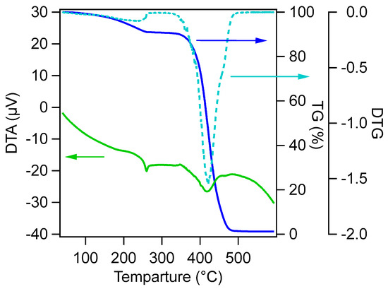 Weight loss and differential thermal analysis versus temperature were obtained using a thermal gravimetric-differential thermal analysis (TG-DTA) apparatus (TG/DTA6200, Hitachi High-Tech Science Co. (Tokyo, Japan)). Approximately 5 mg of the PA66 sample was placed on an aluminum pan and heated from room temperature (RT) to 600 °C at a rate of 10 °C/min under a nitrogen gas flow of 50 mL/min.