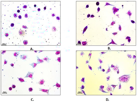 The following morphometric parameters were calculated: the average area of the HEK293 cells and their nuclei (Sn), both expressed in µm2. These values were used to calculate the area of the cytoplasm (Sc) in µm2, as the difference between the total cell area and the area of the nuclei, as well as the Nuclear–Cytoplasmic Ratio (NCR), as the ratio of the area of the nucleus to the area of the cytoplasm (NCR = Sn/Sc) [].