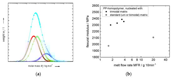 - Tranninger, C.; Lummerstorfer, T.; Horill, T.; Gahleitner, M.; Wang, J.; Bernreitner, K.; Berger, F.; Leskinen, P. Multimodal Polypropylene Composition with High Stiffness and High Flowability and Process for Its Production. EP Patent EP 3945112 A1, 2 February 2022. [Google Scholar]