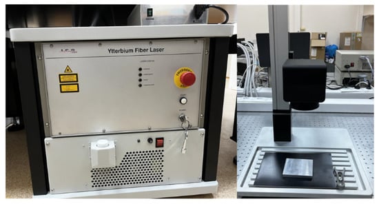 Aluminum oxide nanoparticles were synthesized using the method of laser ablation in the working fluid (deionized water). The target was a high purity aluminum plate A99 (EN AW-1199) containing at least 99.99% aluminum. The plate was immersed in a working liquid (ddH2O), whose layer above the metal target was about 1 mm. We used a P-Mark TT 100 (Pokkels, Moscow Russia) laser ablation installation based on a pulsed ytterbium fiber laser (Figure 1). The following laser parameters were used: wavelength, 1064 nm; pulse duration, 4–200 ns; pulse repetition rate, 20 kHz; average power, up to 20 W; pulse energy, 1 mJ. Irradiation time varied in the range from 5 to 20 min.