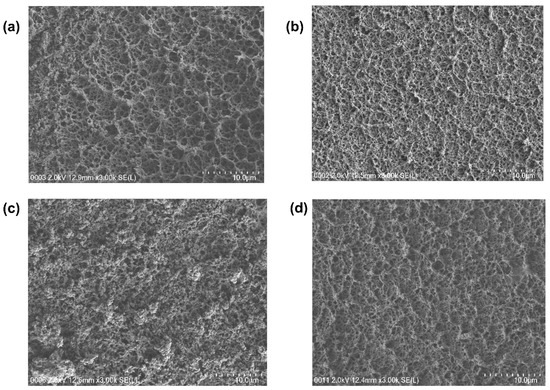 Surface morphology—FESEM micrographs (a): PAP1 (b) PAP2 (c) PAP3 (d) PAP4.
