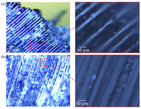 Partial images of crushed composite fragments for (a) CFRP-QS and (b) CFRP-D.