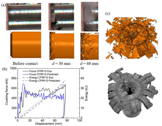 - Rondina, F.; Donati, L. Comparison and validation of computational methods for the prediction of the compressive crush energy absorption of CFRP structures. Compos. Struct. 2020, 254, 112848. [Google Scholar] [CrossRef]