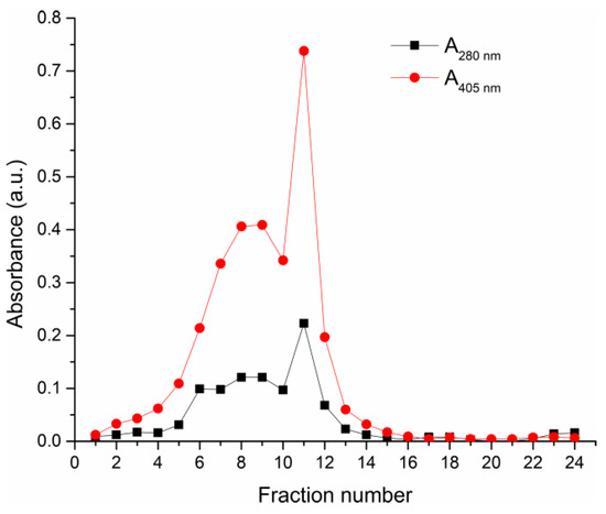 In order to test the influence of HRP preparation purity on the biomineralization process and activity of biocomposites, HRP-C isoforms were isolated, based on previous protocols, using CMC ion-exchange chromatography [19]. HRP-C isoforms were eluted using increasing concentrations of sodium acetate buffer with different pHs (Figure 1).