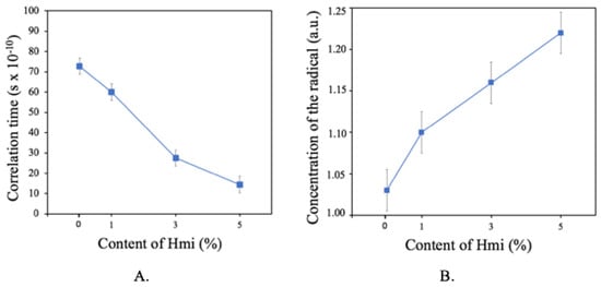 | Content of Hmi % | Tensile Strength (Mean ± SD = 0.05, n = 10) MPa | Elongation at Break (Mean ± SD = 0.2, n = 10) % |