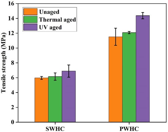 Mechanical properties of the SWHC and PWHC after the thermal and UV aging.