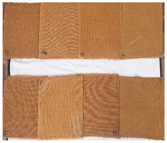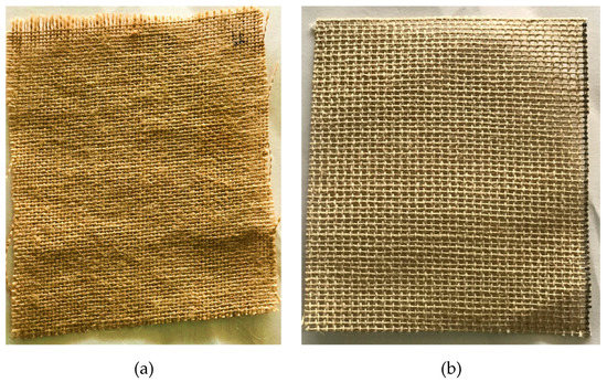 Bidirectional woven sheet of (a) flax fibre (b) ramie fibre.