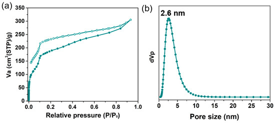 (a) N2 absorption isotherms of Zn-Por-TT COF at 77 K; (b) pore size distribution profile of Zn-Por-TT COF.
