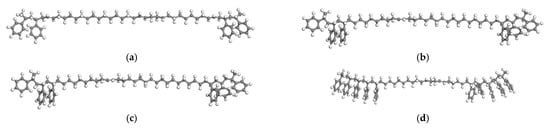 SBS molecular models with different block ratios. (a) 2/8. (b) 3/7. (c) 4/6. (d) 5/5.