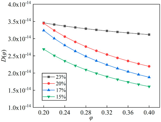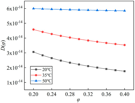 According to Equations (4) and (5), the effective diffusion coefficient D can be written as Equation (6) [20]. As long as δ and w(φ) are obtained, the effective diffusion coefficient D can be calculated.