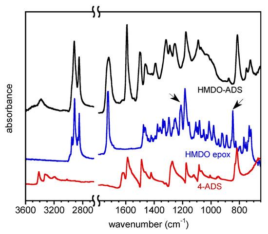 FTIR spectra of 4-ADS, HMDO epox. and HMDO-ADS.