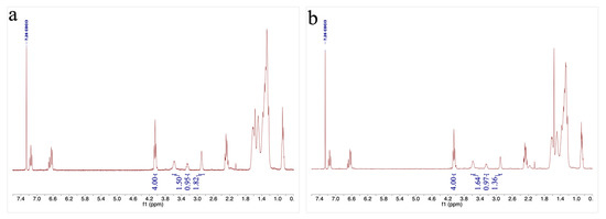 The 1H-NMR and 13C-NMR spectra were recorded by a Bruker AVANCE™-400 spectrometer (400.13 MHz, 100.61 MHz). All NMR spectra were acquired in CDCl3, and the chemical shifts were expressed in ppm (δ) relative to the residual solvent peak (7.26 ppm for 1H-NMR and 77.2 ppm for 13C-NMR).