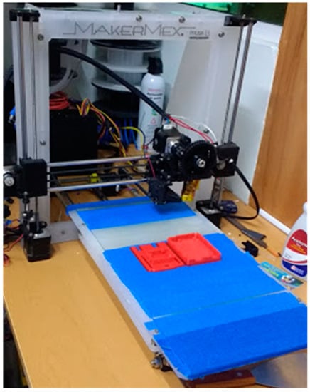In this work, the raw materials used were PLA (polylactic acid) filaments (Ø = 3 mm) supplied by Makermex® (León, Mexico), and PLA filaments (Ø = 3 mm) with carbon fiber additives (20% w/w), Proto-Pasta CFD12805, provided by Shenzhen Hanwei Technology Co. Ltd. (Shenzhen, China). According to the literature, the mechanical properties for these similar filaments are listed in Table 1.