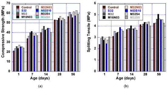 Mechanical properties: (a) compressive strength and (b) splitting tensile strength.