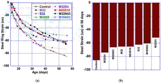 Steel ring strain: (a) 14–56 days and (b) 56 days.