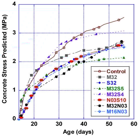 Prediction of the concrete stress using Hossain and Weiss’s prediction model [42].