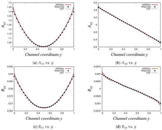Recently, Afonso et al. [32] proposed a generic Kernel-conformation tensor transformation for a large class of differential constitutive models, in which the evolution equation of the kernel tensor (where represents any continuous, invertible and differentiable matrix transformation function and is a matrix containing in its columns the eigenvectors of ), can be expressed in its tensorial formulations as: