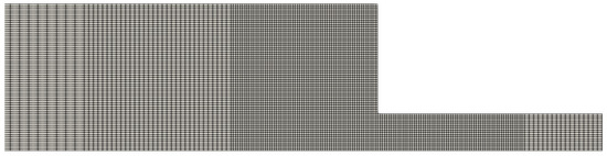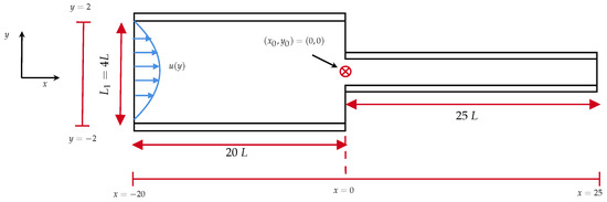 In Equations (6) and (7), the double contraction term presented in the original paper [8] is omitted here in our equations to simplify the definition of no-flux boundary conditions for the density number at the walls, which reduce to a zero-gradient condition. More importantly, we will be focusing on simulating inertial flows (); therefore, the contribution of these omitted terms is negligible.