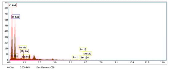 EDX examination for compositions Sm2O3/MgO/GO@CA.