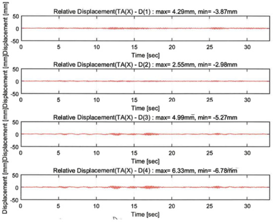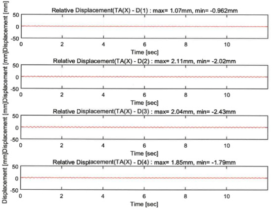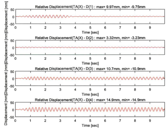 The efficiency of the control techniques was evaluated by comparing the displacement responses of the upper slab. Figure 17 compares the displacement responses depending on the three techniques at seismic excitations and random waves. The dynamic responses were greatly alleviated by the control systems presented in this study. The hybrid control was concluded to be the most reliable seismic reinforcement technique.