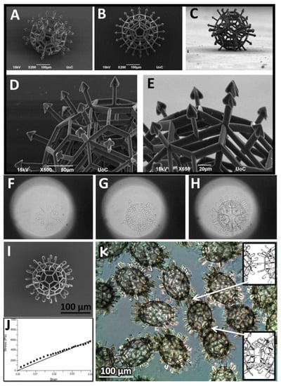 - Danilevicius, P.; Rezende, R.A.; Pereira, F.D.; Selimis, A.; Kasyanov, V.; Noritomi, P.Y.; da Silva, J.V.; Chatzinikolaidou, M.; Farsari, M.; Mironov, V. Burr-like, laser-made 3D microscaffolds for tissue spheroid encagement. Biointerphases 2015, 10, 021011. [Google Scholar] [CrossRef]