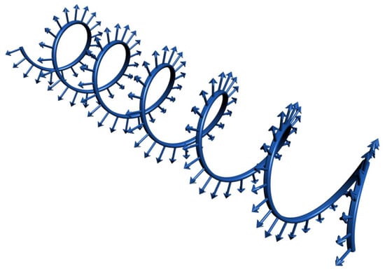 Many human tissues and organs, from a geometrical point of view, are tubes. From an anatomical point of view, tubes are relatively simple in their construction. It is not surprising that many tissue engineers focus their attention on the biofabrication of tubular tissue-engineered constructs [33]. For example, there are many reviews on tissue-engineered blood vessels and vascular grafts [34,35,36]. However, existing methods of biofabrication of tissue-engineered constructs are usually time-consuming, and as a result, they are very expensive and commercially not feasible. Moreover, for the maturation of tubular tissue-engineered constructs, special perfusion bioreactors and expensive perfusion media are necessary. Thus, bioreactor-free technology for rapid and cost-effective biofabrication of tubular tissue-engineered constructs is highly desirable. We have already published a review about bioreactor-free technologies for tissue engineering of tubular tissue constructs. Electrospinning technology is one of the popular and relatively simple, and cost-effective methods of rapid fabrication of tubular scaffolds and tubular tissue-engineered constructs [37,38,39]. It has demonstrated that tissue spheroids could be placed and densely packed on electrospun matrices, and they can later attach and spread on electrospun matrices. A specially designed helix-like arrowed mini-scaffold or arrowed spiral, which we proposed to call “velix” (from a combination of two Greek words “velos” = arrow and “elix” = helix), could be considered as a type of long mini-scaffold (Figure 6). Fabrication of a layer of closely packed tissue spheroids on electrospun matrices will represent the first step in biofabrication, whereas rolling of the mini-scaffold “velix” with simultaneous penetration by arrows in this cellularized electrospun matrix will be the second and final step. Thus, the tubular tissue-engineered construct will be biofabricated.