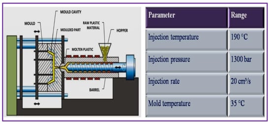 Fabrication of composites involves different conventional manufacturing processes such as extrusion and injection moulding [33]. Further, they are used in the direct integration of short fibers into polymers [34,35]. In the midst of conventional methods, injection moulding increases the spreading of fibers to resin and improving the mechanical characteristics of the composites [36,37].