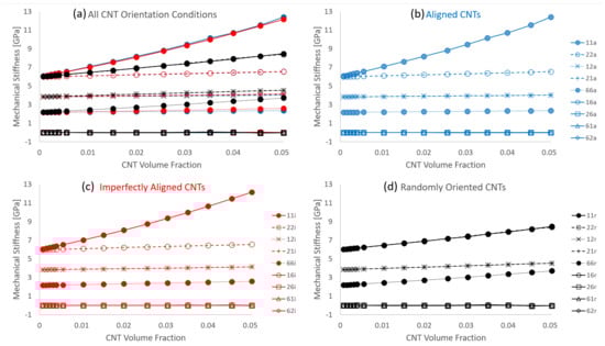 Estimate of engineering constants (a) , (b) , (c) and (d) for all three orientation conditions with straight CNTs.