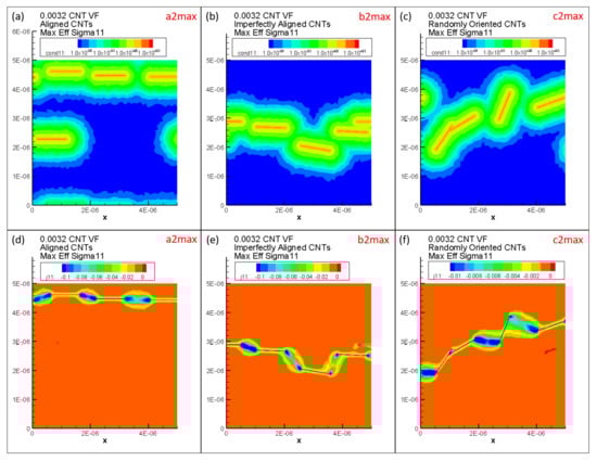 Microscale realizations with straight randomly oriented CNTs at 0.56% CNT volume fraction depicting the effect of CNT orientation on stiffness component .
