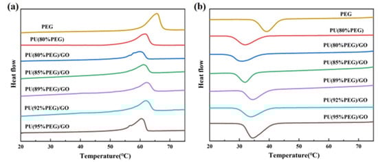 DSC curves of PU/GO during heating (a) and cooling (b).