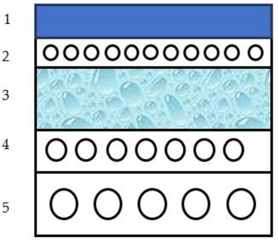 The structure of the multilayer rubber–fabric composite used for offset printing. 1—ink-transferring monolithic layer, 2,4,5—fabric layers, 3—foamed elastomer layer.