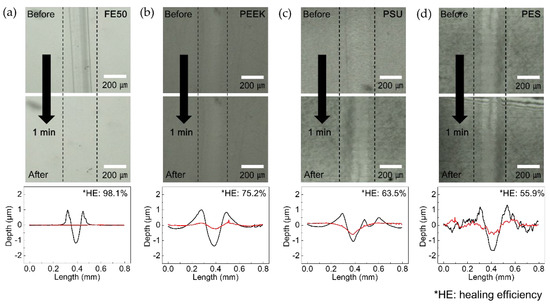 - Kim, J.; Hong P., H.; Choi, K.; Moon, G.; Kang, J.; Lee, S.; Lee, S.; Jung, H.W.; Ko, M.J.; Hong, S.W. A heterocyclic polyurethane with enhanced self-healing efficiency and outstanding recovery of mechanical properties. Polymers 2020, 12, 968. [Google Scholar] [CrossRef]