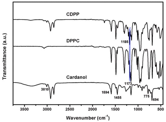 FT-IR spectra of cardanol, DPPC, and CDPP.